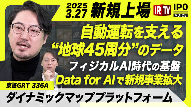 ダイナミックマッププラットフォーム株式会社(本社:東京都渋谷区、以下「当社」)は、株式会社IR Roboticsが手掛ける、投資家の皆様に新規上場企業の概要を分かりやすく届けるIR動画メディアIRTV「IPO VOICE」に、当社代表取締役社長CEOの吉村 修一が出演しましたことをお知らせします。