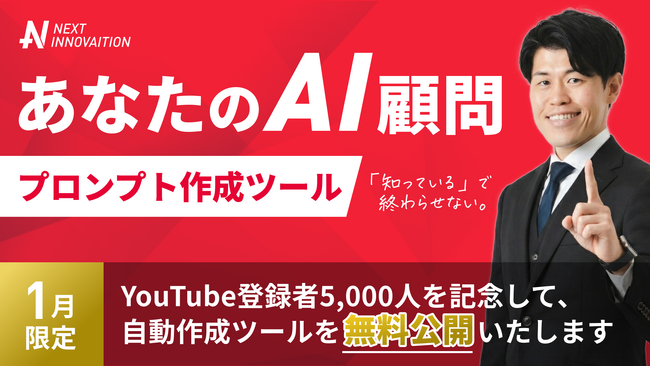 NEXT INNOVAITION株式会社(代表取締役:黒山 結音)は、Googleの生成AI「Gemini」のカスタマイズ機能「Gem」と、AIノートツール「NotebookLM」を連携させ、ユーザーの目的に合わせた“実務用プロンプト”を自動で設計・生成する「プロンプト作成ツール(Gem)」を作成し、無料で配布開始しました。