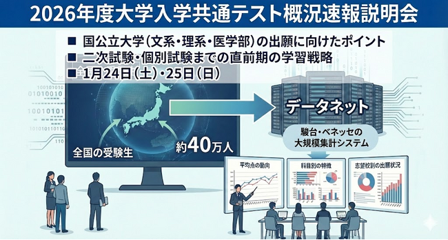 駿台予備学校は、2026年度大学入学共通テスト終了後、全国9会場にて高3生およびその保護者を対象とした「2026年度大学入学共通テスト概況速報説明会」を開催します。