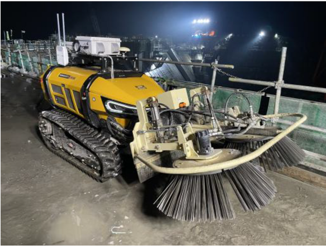 前田建設工業株式会社(本店:東京都千代田区、社長:前田操治、以下、「当社」)は、ダム工事でコンクリート打設後、次の打設に備えて表面の脆弱な薄膜(レイタンス)を人力または機械によりブラシなどで除去する“グリーンカット作業”の省人化に向け、自動施工可能な「自動グリーンカットマシン(以下、「本マシン」)を開発しました(写真-1)。