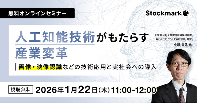 製造業向けAIエージェント『Aconnect』を提供するストックマーク株式会社(以下、「当社」)はオンラインセミナー『人工知能技術がもたらす産業変革 ― 画像・映像認識などの技術応用と実社会への導入』を1月22日 (木)に開催致します。