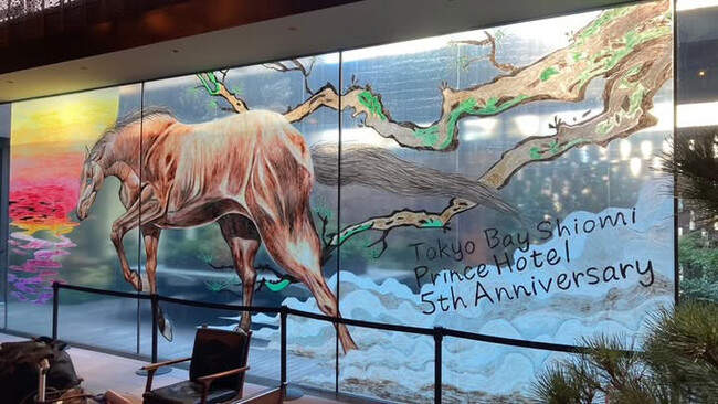 さらに、「制作風景を見ていたご家族から、『子供が刺激を受け、帰宅後に自宅にあるキットパスを使って、窓に馬の絵を描き始めた』という嬉しい報告をSNSを通じて直接いただきました。ライブペインティングを楽しんだご家族がホテル滞在の思い出とともに「体験の持ち帰り」をされた大きな成果につながっています。