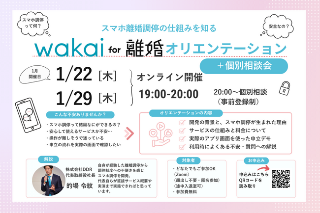 【「スマホ離婚調停を知る『wakai for 離婚』オリエンテーション」概要】