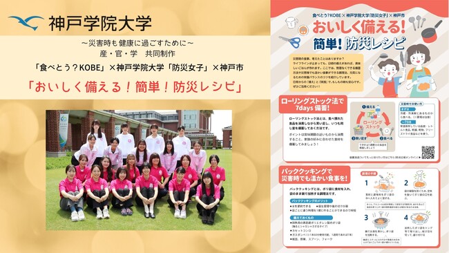 この度、女性視点を活かした防災啓発に取り組むサークル「防災女子」のメンバーが、「食べとう?KOBE」・神戸市と連携し、平常時にも災害時にも活用できるレシピ集「おいしく備える!簡単!防災レシピ」を作成しました。