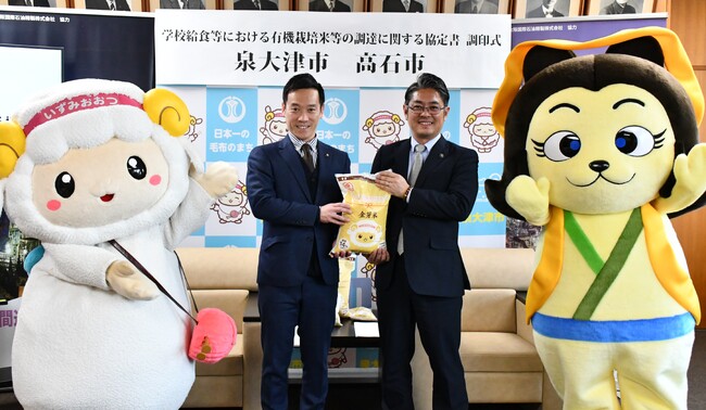 泉大津市(市長:南出 賢一)と高石市(市長:畑中 政昭)は、令和8年1月16日、学校給食等において安全・安心な有機栽培米・特別栽培米を安定的に活用することを目的に、「学校給食等における有機栽培米等の調達に関する協定」を締結しました。