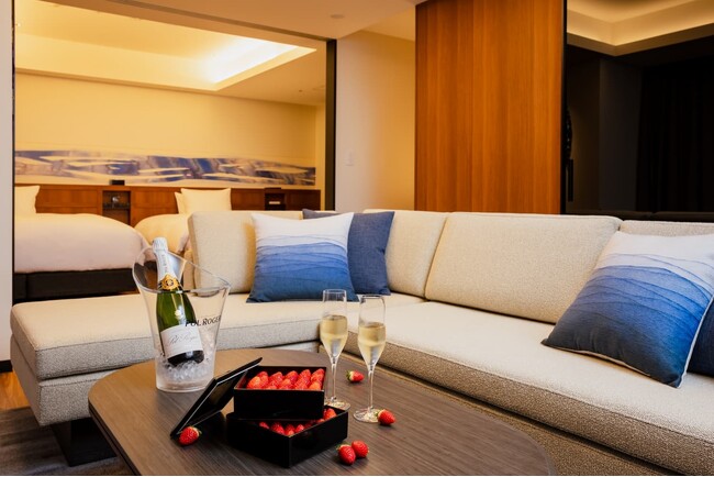 開業から1周年を迎えた日頃の感謝を込めて、さまざまな企画を計画しており、今回はその第1弾として特別宿泊プランをご用意いたしました。本プランは20階、21階の高層階に位置するコンセプトフロアの客室の中でも特に広いスイートタイプの客室に、ボトルシャンパーニュとお重に詰め込まれた国産のいちごをご用意いたします。ゆったりとしたソファを備えたリビングルームで、大きな窓から眺める抜群の景色とともに、お好きな時間にお召し上がりいただけます。