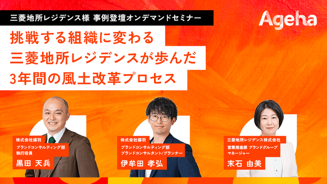 コーポレートブランディング支援を行う株式会社揚羽(東京都中央区 代表取締役社長:湊 剛宏 証券コード:9330)は、オンデマンドセミナー「挑戦する組織に変わる 三菱地所レジデンスが歩んだ3年間の風土改革プロセス」を、2026年3月31日(火)まで配信します。