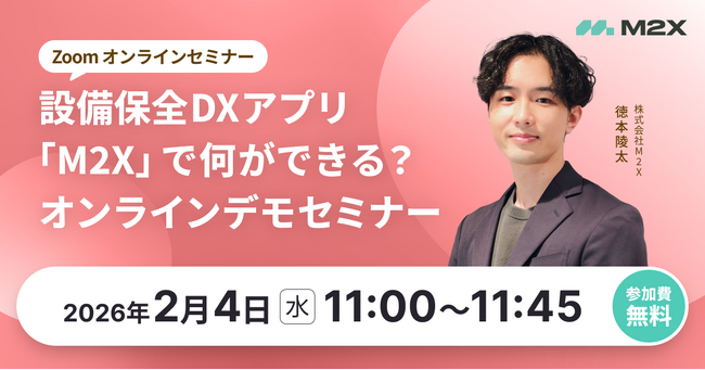 株式会社M2X(本社:東京都中央区、代表取締役:岡部晋太郎)(以下「当社」)は、「設備保全DXアプリ『M2X』で何ができる?オンラインデモセミナー」と題した無料オンラインセミナーを開催致します。