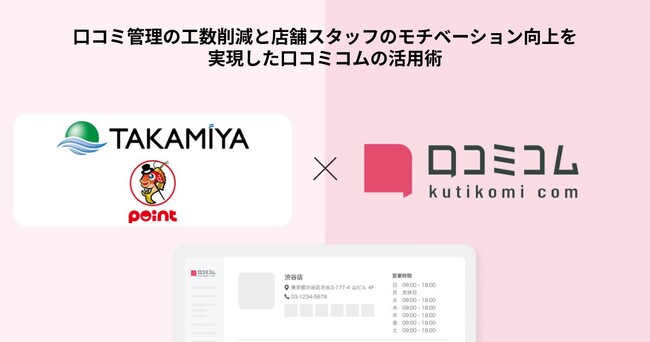 株式会社mov(代表取締役:渡邊誠、本社:東京都渋谷区、以下mov)は、株式会社タカミヤ(代表取締役社長:上田桂嗣、本社:福岡県北九州市)が、店舗向け集客一元化プラットフォーム「口コミコム」を活用した、店舗運営やマーケティング施策への活用事例をご紹介します。