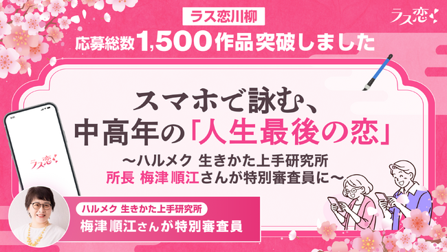 対象年齢が40歳以上の恋活・婚活マッチングアプリ「ラス恋」を運営する、株式会社ラス恋(アイザックグループ/本社 : 東京都渋谷区/代表取締役CEO : 山口 昂星)は、2025年12月23日より募集を開始した「第一回ラス恋川柳コンテスト」において、開始から4週間で応募作品数が1,500件を突破したことをお知らせします。