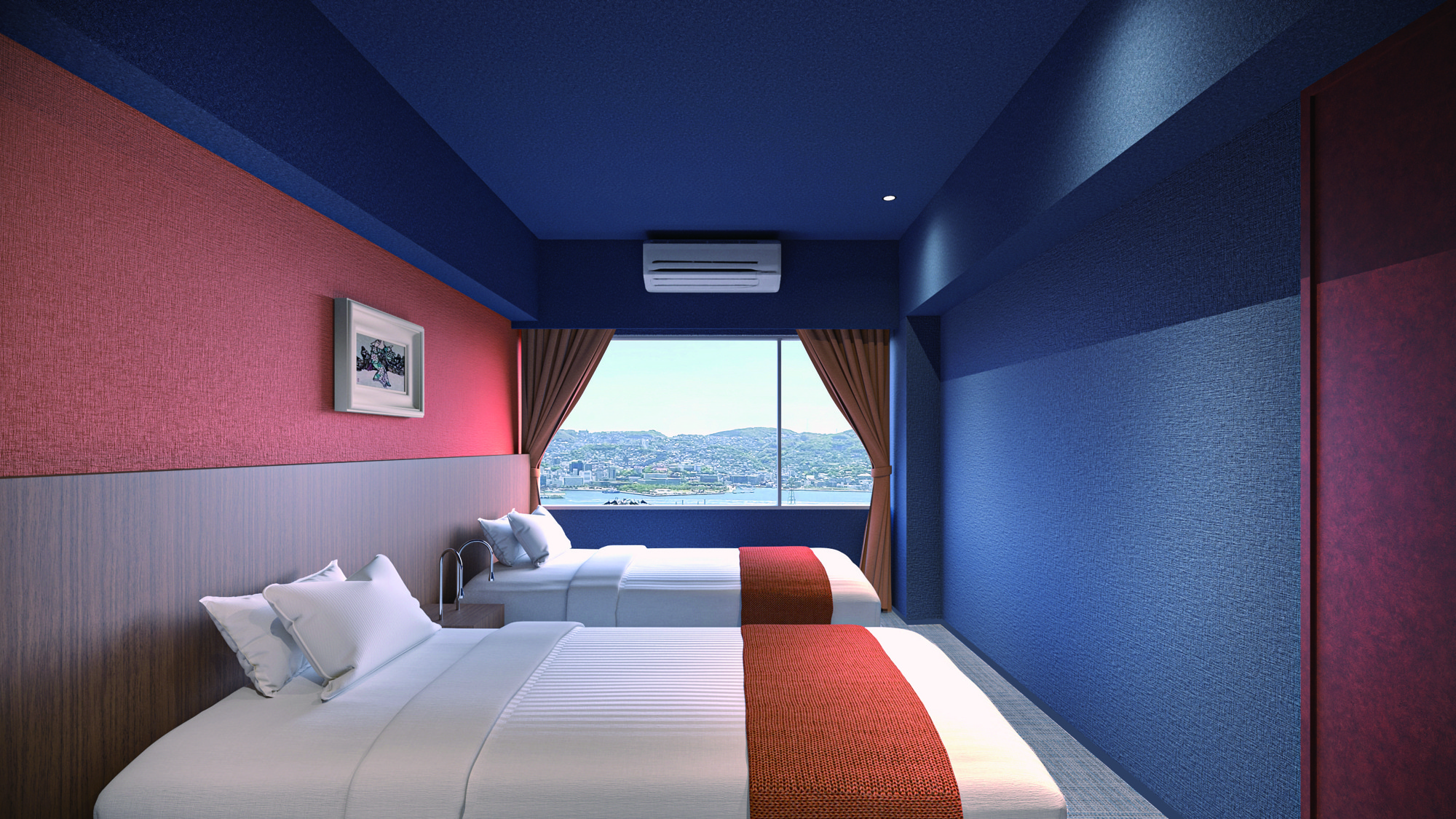このたびのリニューアルにより、全客室が「和色」をテーマにした、和モダンな空間に生まれ変わります。稲佐山の中腹に位置する当館の客室からは、長崎の1,000万ドルの夜景を一望いただけます。