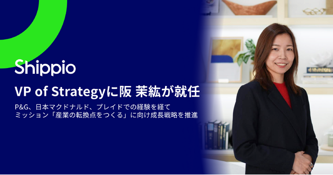 貿易DXを推進する株式会社Shippio(本社:東京都港区、代表取締役CEO:佐藤 孝徳、以下Shippio)は、新たにVP of Strategyとして阪 茉紘(さか まひろ)が就任したことをお知らせします。P&G、日本マクドナルドといったグローバルカンパニーでの経験、そしてベンチャーの上場前後において成長を牽引してきた人材の参画により、Shippioは強固な組織づくりと事業成長を進めてまいります。