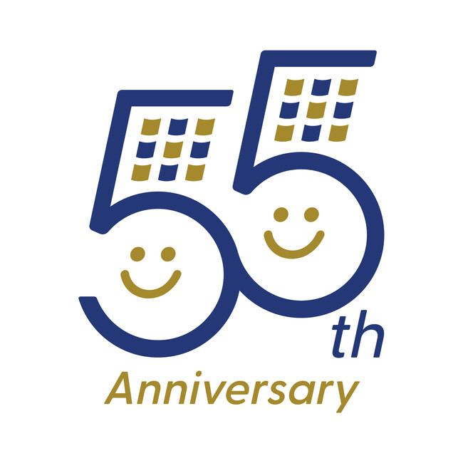 開業55周年にあたり作成したロゴマークは、55という数字にホテル外観のシルエットと笑顔を忍ばせ、親しみやすい笑顔でお迎えするホテルを表現いたしました。また、スローガンは「感謝を心に、ともに未来へ。」とし、これまでのご愛顧への感謝とこれからもお客様の笑顔を私たちの誇りとし、未来へとつなげていきたいという想いを表しています。