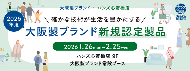2025年度大阪製ブランド新規認定製品(11製品)が揃う販売イベントを1月26日(月)~2月25日(水)の期間中、ハンズ心斎橋店にて開催。新規認定製品の魅力を体感できる場を提供します。