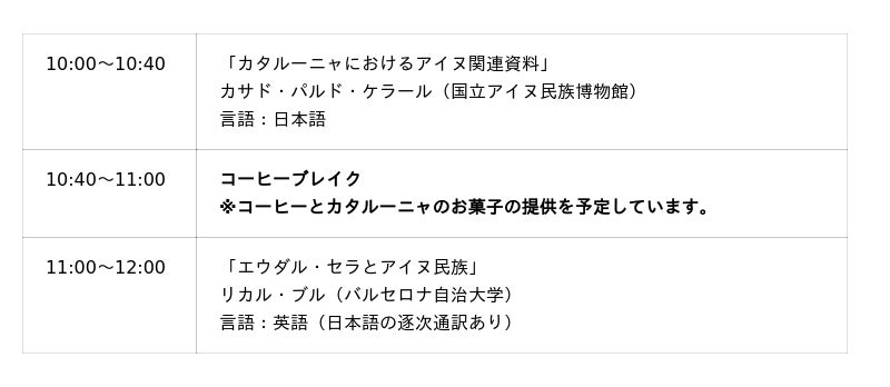 共 催:カタルーニャ州政府 日本事務所、国立アイヌ民族博物館
