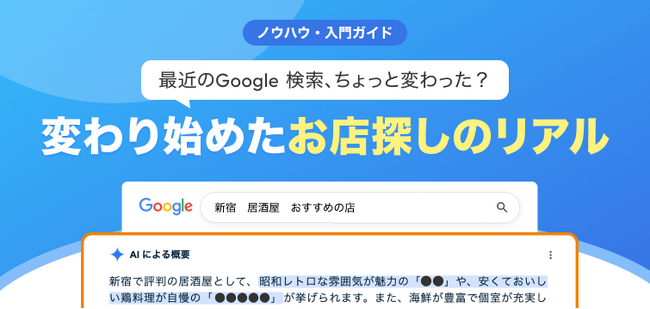 突然ですが、最近Googleでお店を検索した際、検索結果の一番上に「AIがまとめた文章(概要)」が表示されるようになったことにお気づきでしょうか?