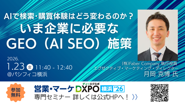 株式会社Faber Company(本社:東京都港区、代表取締役:古澤暢央、証券コード:220A)は、2026年1月23日(金)に開催される「営業・マーケDXPO横浜’26」に登壇いたします。