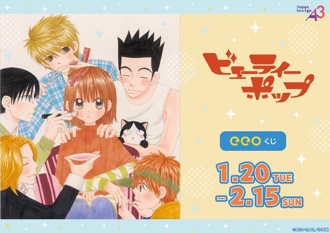 『ビューティーポップ』のオンラインくじ「eeoくじ」が、2026年1月20日(火)より通販サイト「eeo Store online」にて販売スタート! 主人公の小柴綺里をはじめ、鳴海彰伍、落合計彦、南啓らの公式イラストを使用したアイテムが、景品としてラインナップしました。