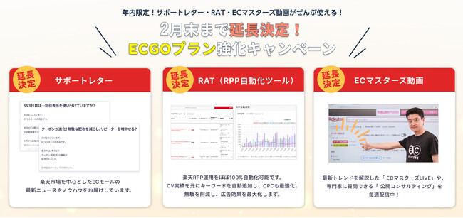 楽天市場RPP自動最適化に備える「ECGOプラン強化キャンペーン」大好評につき延長決定!