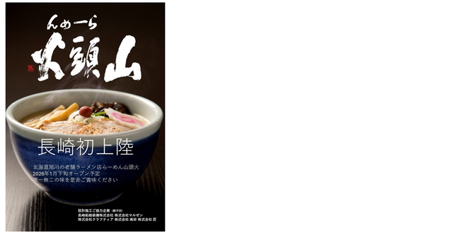 株式会社アブ・アウトと株式会社リージョナルクリエーション長崎は、2026年1月26日(月)に長崎スタジアムシティに、“長崎県初出店”となる「らーめん山頭火」を、オープンすることをお知らせいたします。