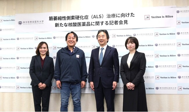 東京慈恵会医科大学 総合医科学研究センター 再生医学研究部(東京都港区、教授 岡野ジェイムス洋尚)と株式会社Veritas In Silico(本社:東京都品川区、代表者:代表取締役社長 中村 慎吾、以下「VIS」と表記)は、筋萎縮性側索硬化症(以下、「ALS」と表記)の新規治療法の開発について共同研究(以下「本研究」と表記)を行っております。このたび、本研究の成果であるALS治療に向けた新たな核酸医薬品の物質特許が公開されました。このことと合わせて、本研究の概要について以下お知らせします。