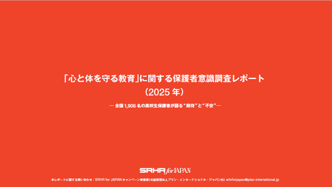 国際NGOプラン・インターナショナル(所在地:東京都世田谷区 理事長:池上清子 以下、プラン)は、一般社団法人全国高等学校PTA 連合会の協力を得て、全国の高等学校に在籍する生徒の保護者を対象とした「心と体を守る教育」に関する意識調査レポートを発表しました。