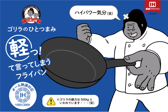 ゴリラのようなハイパワー気分を味わえる?26cmでわずか475gの軽量フライパン「ゴリラのひとつまみ オール熱源タイプ」をラインアップに追加して発売