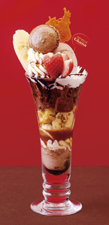 特長:チョコレートの味わいがしっかり感じられる濃厚なプレミアムガーナショコラアイスに、深い味わいのチョコスポンジやマカロン、ほろ苦のキャラメルフレークをちりばめた、ゴージャスなパフェ。相性抜群のバナナと小気味よいクラッシュナッツもうれしいアクセント。