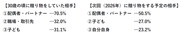 ■かつて一般的だった “職場の義理チョコ” は32%から9%へと大きく縮小。一方で、毎年配偶者・パートナーへ贈り物をしている人は62.1%と、身近な家族への愛情や感謝を伝える機会としてのバレンタインデーの役割は継続