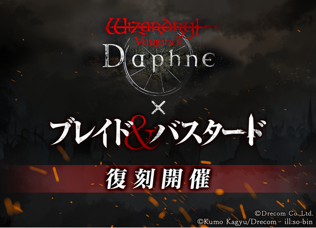 株式会社ドリコム(本社:東京都品川区、代表取締役社長:内藤裕紀、以下ドリコム)は、「Wizardry(ウィザードリィ)」シリーズの3DダンジョンRPG『Wizardry Variants Daphne(ウィザードリィ ヴァリアンツ ダフネ)』において、著・蝸牛くもが贈るダークファンタジー『ブレイド&バスタード』とのコラボイベントの復刻開催が決定したことをお知らせいたします。