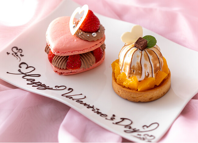 バレンタインデー・ホワイトデーの期間に愉しめる、「苺のマカロンケーキ」と「オレンジタルト」の2種類のホテルパティシエ特製スイーツがセットになった宿泊プランをご用意しました。