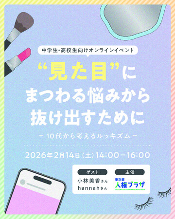 10 代の中高生を対象に、「ルッキズム(外見至上主義)」をテーマとしたイベントを開催いたします。ルッキズムとは、見た目によって人の価値を判断し、扱いを変える偏見や差別を指します。SNS が広く普及し、情報があふれる時代に、周囲の視線を気にしやすい思春期世代にとって、外見の評価が自己価値と直結しやすく、深刻な問題となり得ます。さらに、ルッキズムは個人の意識にとどまらず、経済・教育・メディア・働き方など社会の仕組みにも根付いた人権課題です。