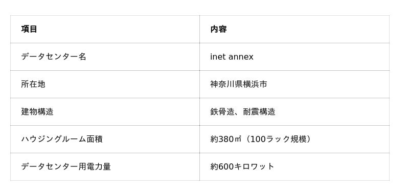 株式会社アイネット(東証プライム:コード番号9600、本社:神奈川県横浜市、代表取締役:佐伯 友道、以下「アイネット」)は、2026年1月20日、横浜市において自社データセンター(以下「DC」)と連携する新たなDC「inet annex」を開所しました。