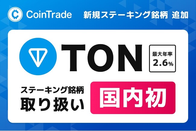 株式会社セレス(本社:東京都渋谷区、代表取締役社長:都木 聡、証券コード:3696、以下セレス)の連結子会社である株式会社マーキュリー(本社:東京都渋谷区、代表取締役社長:都木 聡、以下マーキュリー)は、同社が提供する暗号資産販売所のステーキングサービス「CoinTrade Stake(コイントレードステーク)」において、「トンコイン(TON)」の取り扱いを2026年1月21日より新たに開始いたします。「トンコイン(TON)」をステーキング銘柄として取り扱うのは国内で初となります。※