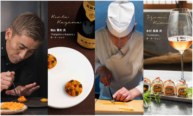 クリュッグ アンバサダーが共演 「Margotto e Baciare」の加山賢太氏 &「大工町 鮨人」の木村泉美氏 「KRUG x CARROT FOUR HANDS DINNER」を二日限定で開催