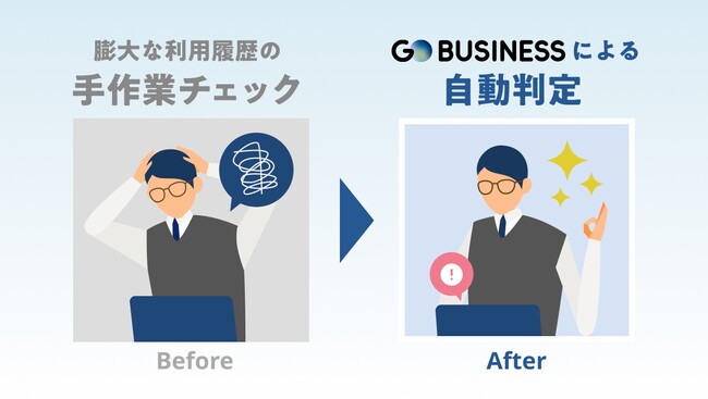 『GO BUSINESS』は契約社数12,000社を突破し、多くの企業においてタクシー利用の経費精算レスやタクシー移動のDXを実現しています。その一方で、社内規定に沿った適正な利用が行われているかを確認する作業が、管理者の負担となっている点が課題となっていました。