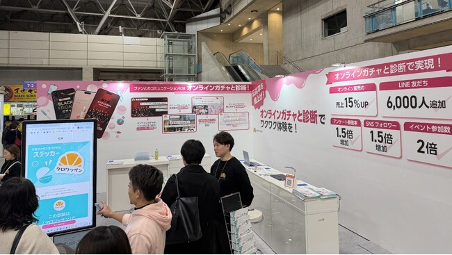 当社ブースでは、スマートフォンでQRコードを読み取って参加できるオンラインガチャ体験に加え、ライブ・イベント現場を想定した導線設計のご相談を受け付けています。1日目終了時点で来場が600名を超え、会期中の反響拡大が見込まれます。