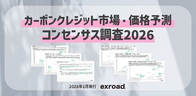 カーボンクレジット・排出量取引制度オールインワンデータベースを提供する株式会社exroad(エクスロード、本社:東京都港区、代表取締役:木村圭佑)は、「カーボンクレジット市場・価格予測コンセンサス調査2026」を公表いたしましたので、お知らせいたします。