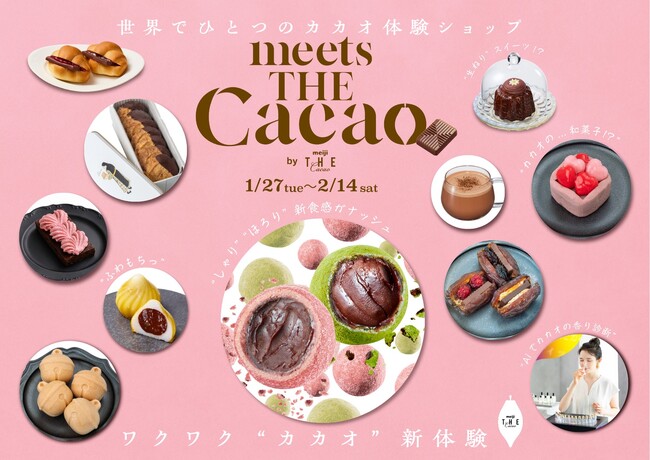 イベント名称:"meets THE Cacao" 世界でひとつのカカオ体験ショップ by meiji THE Cacao開催日時:2026年1月27日(火)~2月14日(土)11時00分~20時00分 ※施設営業時間に準ずる