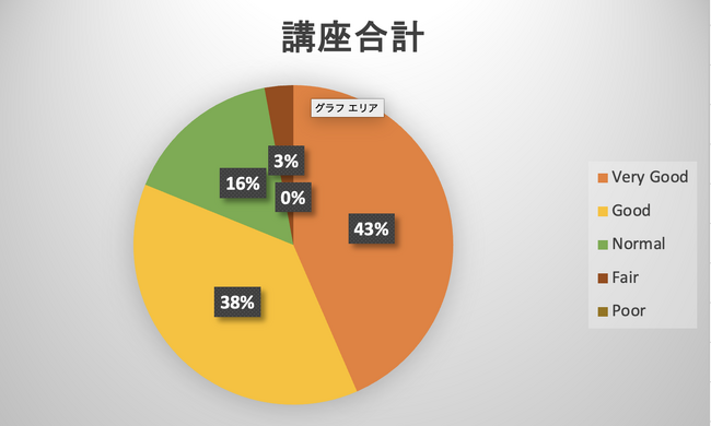講座合計の評価:Very Good(とても良い)が43%