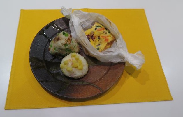 メニュー名 ミルクおむすびとスペイン風オムレツ(和風)・パピヨット仕立て