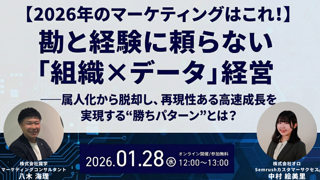 ・セミナータイトル:【2026年のマーケティングはこれ!】勘と経験に頼らない「組織×データ」経営─ 属人化から脱却し、再現性ある高速成長を実現する“勝ちパターン”とは? ─