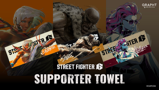 この度『GRAPHT』は、「ストリートファイター 6」(株式会社カプコン)のYear 2、Year 3でプレイアブルキャラクターとして実装された「エレナ」「サガット」「C.ヴァイパー」をデザインした『サポータータオル』3種を発売し、本日2026年1月22日(木)11:00よりGRAPHT公式ECサイト(GRAPHT OFFICIAL STORE)にて予約販売を開始いたします。