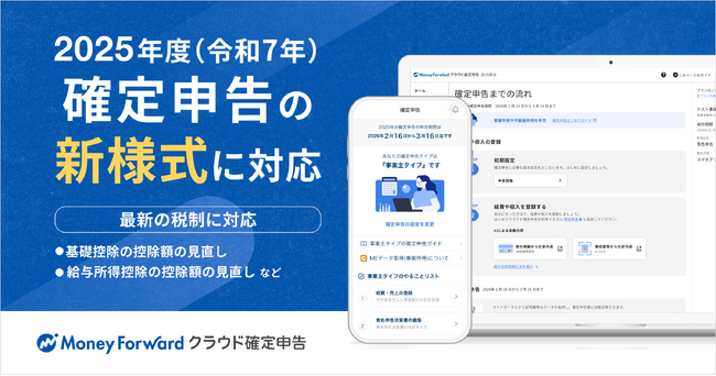 株式会社マネーフォワードは、『マネーフォワード クラウド確定申告』において、2025年度(令和7年分)確定申告書様式の出力に対応しました。