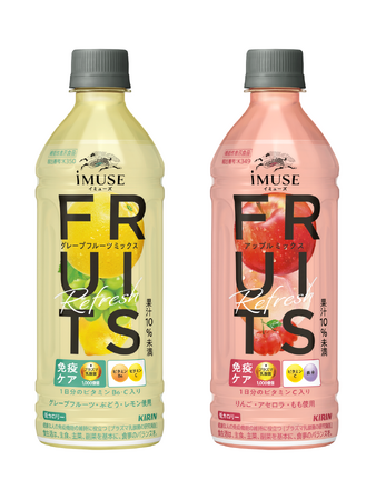 キリンビバレッジ株式会社(社長 井上一弘)は、キリンの独自素材「プラズマ乳酸菌」を配合し、「健康な人の免疫機能の維持をサポート」する機能性表示食品「iMUSE(イミューズ)」ブランドより、新シリーズとなる「キリン iMUSE フルーツリフレッシュ グレープフルーツミックス」と「キリン iMUSE フルーツリフレッシュ アップルミックス」の2種類を4月14日(火)より全国で新発売します。