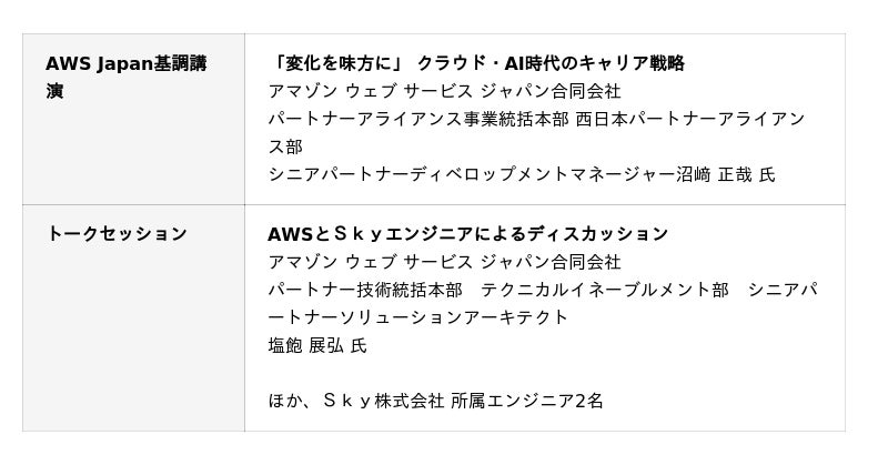 Sky株式会社主催 / AWS Japan協力ウェビナー 「AI時代に、クラウドエンジニアに求められる価値とは?!」を開催