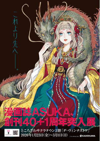 株式会社KADOKAWA(本社:東京都千代田区、取締役 代表執行役社長 CEO:夏野剛、以下KADOKAWA)は、2025年6月をもって創刊40周年を迎えた漫画誌『ASUKA』。そして、次の一歩目を踏み出す2026年1月23日(金)より、ところざわサクラタウンにて「ASUKA創刊40+1周年 突入展」を開催します。
