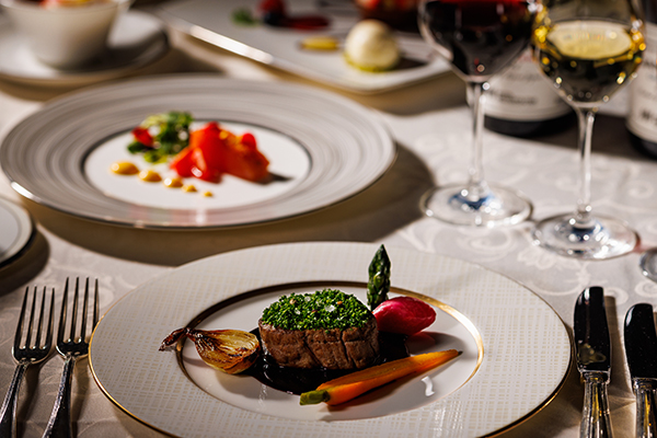ホテルならではの細やかなサービスと、シェフ自慢のこだわりの料理を正餐スタイルでご提供いたします。西洋料理だけで なく、ホテル直営レストラン中国料理「桂林」や、日本料理「花むさし」が贈るコースもご用意いたしました。食事に合わせたお飲み物とともにお楽しみください。[画像4: https://prcdn.freetls.fastly.net/release_image/30117/2226/30117-2226-508fc423f8bf5394164241589d67acf6-3900x2601.jpg?width=536&quality=85%2C75&format=jpeg&auto=webp&fit=bounds&bg-color=fff ]