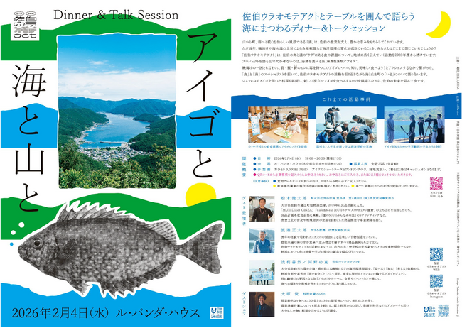 一般社団法人KIISAは、2026年2月4日(水)にディナー&トークセッション「アイゴと海と山と」をル・パンダ・ハウス(大分県佐伯市)にて開催いたします。磯焼けの一因とされる植食性魚類・アイゴをテーマに、食と海のスペシャリストとのトークセッション、シェフによるアイゴを用いた料理とともに、佐伯の海の今とこれからを語らう一夜です。このイベントは、次世代へ豊かで美しい海を引き継ぐために、海を介して人と人とがつながる“日本財団「海と日本プロジェクト」”の一環です。