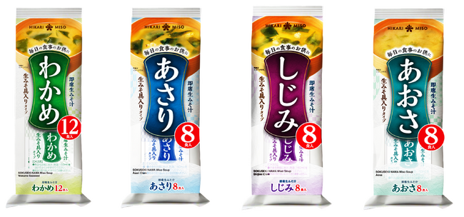 ひかり味噌株式会社※(長野県諏訪郡下諏訪町、代表取締役社長 林 善博、以下 当社)は、2026年春夏新商品として、『即席生みそ汁 わかめ 12食』『即席生みそ汁 あさり 8食』『即席生みそ汁 しじみ 8食』『即席生みそ汁 あおさ 8食』の4種の生みそ具入りタイプの即席みそ汁を2026年3月1日(日)より、全国のスーパーマーケットなどにて発売いたします。
